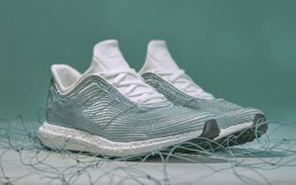 Ma i tessuti in plastica riciclata non catturano solo i red carpet. Adidas, in collaborazione con Parley for the Oceans, ha creato le UltraBOOST Uncaged Parley, le prime scarpe da ginnastica realizzate con rifiuti plastici marini (foto Adidas) -