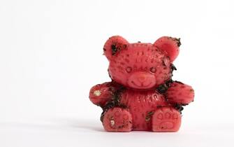 In questa immagine, l’orsetto di plastica ritrovato ai bordi del fiume nel Kent è stato portato in studio e “immortalato” dal fotografo Dan Kitwood per il suo progetto sull’inquinamento dei mari (photo: Dan Kitwood/Getty Images) -