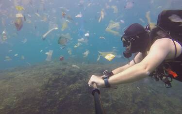 Rich Horner non nuota tra pesci, coralli e altri organismi marini ma nel mezzo di una quantità enorme di rifiuti di plastica. Le riprese nei fondali di una celebre meta turistica dell'Indonesia . LO SPECIALE SKY: Un mare da salvare