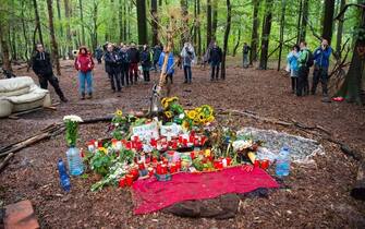 Come riporta l'agenzia Dpa, la scorsa settimana un giornalista di 27 anni è morto cadendo da un ponte sospeso alto almeno 15 metri. Nella foto un memoriale improvvisato dagli ambientalisti all'interno della foresta per ricordare il ragazzo –
