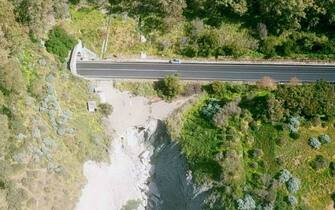 Dalle riprese dall’alto si nota come le frane distino ormai pochi metri dal tratto stradale, dove sarebbe a rischio anche una galleria (foto: Associazione Mareamico Agrigento) –