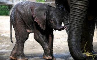 Cucciolo di elefante nato nello zoo di Wuppertal in Germania. Le foto