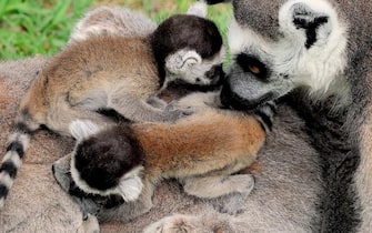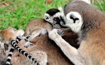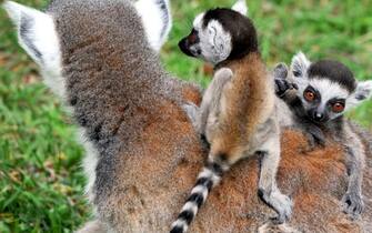 Un parto gemellare nella famiglia dei lemuri catta, nella foto, del Bioparco. Sono protoscimmie dalla coda ad anelli bianchi e neri che in natura vivono soltanto in Madagascar. I lemuri catta sono animali altamente sociali, noti per le evoluzioni acrobatiche e le caratteristiche posture yoga per prendere il sole (Credit: Massimiliano Di Giovanni - Archivio Bioparco)
