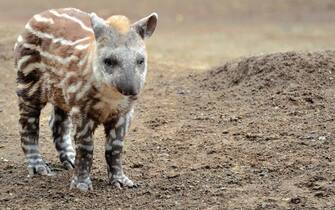 Un'altra nuova arrivata è la piccola femmina di tapiro sudamericano. Pesa circa venti kg e si riconosce per il caratteristico mantello a strisce marroni e bianche che perderà a tra qualche mese (Credit: Massimiliano Di Giovanni - Archivio Bioparco)