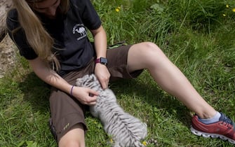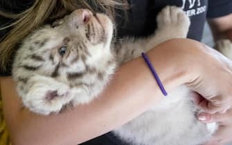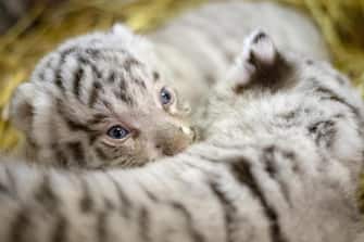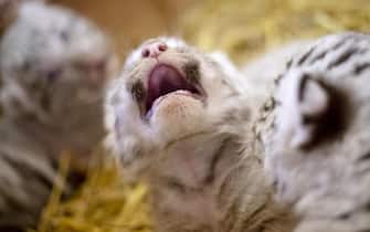 I cuccioli di tigre bianca del Bengala nello zoo di Kernhof, in Austria. FOTO