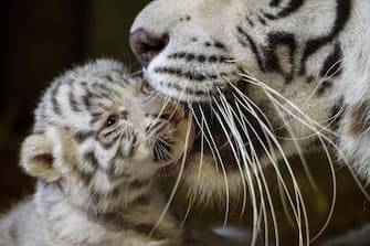 Tre cuccioli di tigre bianca del Bengala sono nati nello zoo di Kernhof, in Austria. La madre, Burani, li ha partoriti il 7 maggio scorso. I nuovi arrivati sono stati chiamati Hector, Pascha e Zeus