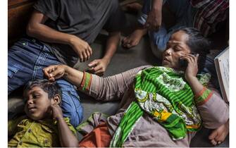 © Shahidul Alam/Drik/Majority World - Il fotografo del Bangladesh Shahidul Alam entra in un orfanotrofio e immortala una donna al telefono impegnata nella cura di uno degli orfani che vivono lì -