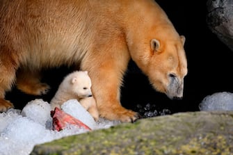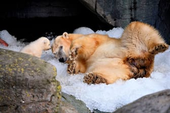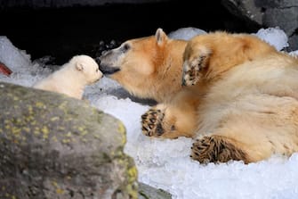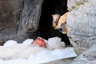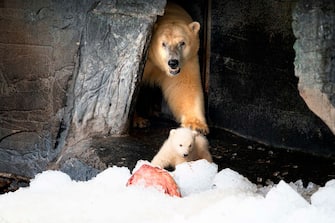 Copenaghen, allo zoo un cucciolo di orso polare esce per la prima volta con la mamma. FOTO
