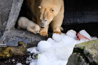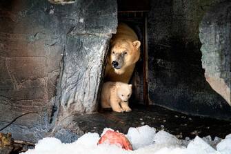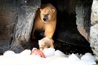 Un felice evento per tutti i visitatori dello zoo di Copenaghen: un cucciolo di orso polare della struttura si è infatti mostrato per la prima volta in pubblico in compagnia della madre