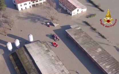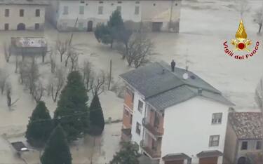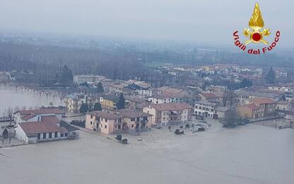 Due video dei vigili del fuoco mostrano rispettivamente la frazione di Brescello in provincia di...