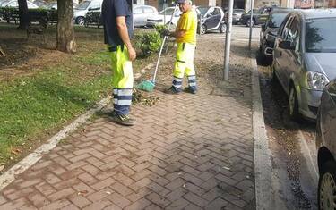 Intensa attività operatori pulizia strade da piante e detriti