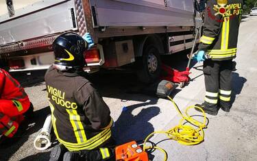 A Falconara anziana liberata con cric e cuscini gonfiabili Vvf