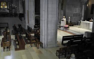 (ANSA) - ANCONA, 12 APR - "Anche noi come Pietro e le donne non possiamo trovare speranza, restando nei nostri sepolcri sigillati, rinchiusi in noi stessi". E' un messaggio di apertura quello lanciato dall'arcivescovo di Ancona Osimo Angelo Spina che, in osservanza delle misure anticontagio da coronavirus, ha celebrato la messa di Pasqua nel Duomo dedicato a San Ciriaco, con un paio di sacerdoti e suore, che si sono alternati nelle letture, e il tecnico per la ripresa del rito, trasmesso dal vivo dall'emittente èTv Marche. Spina ha letto il passo dei vangeli dedicato alla resurrezione di Cristo, citando i massi che ne chiudevano il sepolcro, trovati spostati dai discepoli e dalle donne. "La prima pietra da far rotolare via oggi - ha detto - è la mancanza di speranza, l'essere cristiano senza speranza come se il centro della vita fossero i nostri problemi". Oggi "con voce umile, senza fiori, soli davanti a dio, diciamo 'non so come va questo, ma sono sicuro che Cristo è risorto'. Apriamoci alla speranza e mettiamoci in cammino".