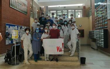 Lacrime di commozione e sorrisi di gioia tra il personale sanitario dell'Ospedale Carlo Urbani di Jesi per la "ripartenza" di Francesco Foschi, l'ingegnere 34enne di Montelabbate (Pesaro Urbino), ricoverato dal 15 marzo e dimesso oggi dopo cinque mesi di terapia intensiva e poi di riabilitazione post-Covid. Un evento che segna il ritorno alla normalità anche per il nosocomio jesino, già da tempo covid free ma da oggi anche senza ricoveri ex-covid. "La storia che Francesco ha raccontato è la sua storia - osserva Sonia Bacelli, direttrice sanitaria del 'Carlo Urbani' -. Ma lui rappresenta per noi anche la storia dell'ospedale in questo periodo: il suo arrivo segnava la trasformazione dell'Ospedale di Jesi in Ospedale Covid positivo e successivamente il suo percorso di negativizzazione dal virus e di ripresa e recupero ha accompagnato il ritorno alla 'normalità' delle attività dell'intera struttura". (ANSA).