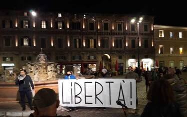 "Libertà", "Non siamo untori" e anche frasi contro il sindaco Matteo Ricci che aveva definito una "pagliacciata" la cena di protesta contro il mini-lockdown organizzata la sera del 26 ottobre con 90 persone dal ristoratore Umberto Carriera, durante la quale era scattato un blitz della polizia. Le scritte campeggiavano nei cartelli esposti nella manifestazione promossa a Pesaro in Piazza del Popolo da Carriera sanzionato, anche con la chiusura di 15 giorni del ristorante "La Macelleria". In piazza un centinaio di persone, in mascherina. Dall'iniziativa di Carriera si sono smarcati commercianti ed esercenti aderenti a Confcommercio in piazza il 7 novembre.