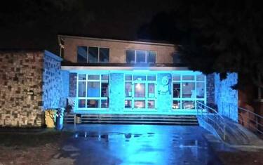 (ANSA) - MONTE ROBERTO (ANCONA), 03 FEB - La scuola di Monte Roberto (Ancona) si illumina di blu per dire no al bullismo.