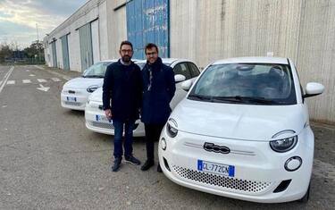 L'assessore al Fare Riccardo Pozzi e l'assessore al Rigore Andrea Nobili annunciano il "cambio di marcia" dell'Amministrazione "con l'arrivo di quattro nuove macchine elettriche (500 full electric ndr) a noleggio, che andranno a sostituire vecchi veicoli diesel e benzina a disposizione del Centro Operativo Comunale".