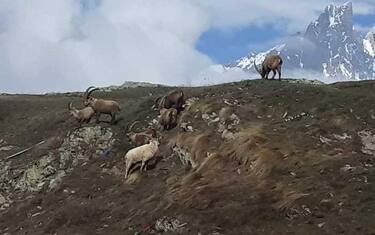E' stato fotografato vicino al rifugio Bertone, sopra Courmayeur, un raro esemplare di stambecco bianco. A immortalarlo è stato il nepalese Sukabir Tamang che lavora al rifugio, gestito dalla guida alpina Renzino Cosson. La storia è stata raccontata oggi dal quotidiano La Stampa. "Fa parte di un branco di una decina di esemplari - spiega Cosson - e ogni tanto arriva vicino al rifugio alla ricerca di erba fresca. Lo abbiamo già visto in passato. Avrà circa 7-8 anni. Si muove tra la val Ferret, il Mont de la Saxe e l'alta Valdigne. Ha il pelo bianco ma non sappiamo se è albino. Comunque vive con gli altri, segno che è stato accettato dal branco".