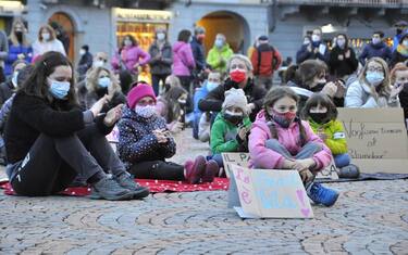 Oltre 400 persone, tra adulti, bambini e ragazzi, hanno partecipato in piazza Chanoux ad Aosta a un sit-in di protesta contro la decisione di Regione, Comune e Usl di utilizzare il Palaindoor come principale centro vaccinale regionale.