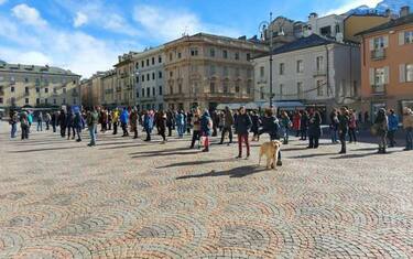 A poche ore dall'entrata in vigore del super Green Pass per gli over 50 per lavorare, un centinaio di persone si sono radunate in piazza Chanoux, ad Aosta, per protestare contro vaccini e Green Pass. Disposti in fila nella piazza simbolo della città, criticano il vaccino definendolo "siero sperimentale". E ancora "siamo in dittatura, vergogna!". A presidiare la piazza ci sono i rappresentanti delle forze dell'ordine.