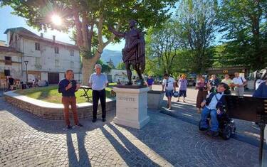 "Un braccio teso verso l'Europa per indicare un comune cammino di pace". Descrive così il sindaco di Aosta, Gianni Nuti, la statua dell'imperatore Augusto, svelata nel pomeriggio in piazza Arco d'Augusto. Realizzata con l'antica tecnica della cera persa, l'opera in bronzo è stata donata al Consiglio Valle dall'Ami de la Vallée d'Aoste Léonard Gianadda, presidente della Fondation Pierre Gianadda di Martigny.