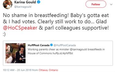 Canada, ministro allatta in parlamento: il video diventa virale Mondo "Non bisogna vergognarsi di allattare! Il bambino ha bisogno di mangiare e io dovevo votare":... 22 giu - 09:27
