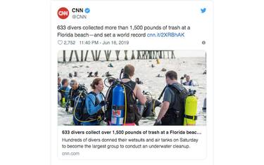 Usa, 633 sub hanno raccolto oltre 700 kg di spazzatura in mare Ambiente I sommozzatori si sono riuniti in Florida e hanno recuperato di tutto, dai piombi da pesca a una... 17 giu - 11:40