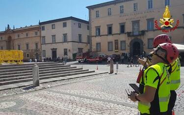 Drone per caduta pezzo duomo Orvieto Umbria Staccato frammento cornicione. Turisti possono accedere a chiesa 10 ago - 16:23