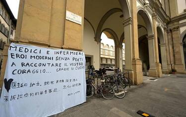 Covid,scritta 'medici e infermieri eroi' Toscana In italiano e cinese, appeso davanti a un ospedale 12 mar - 16:47