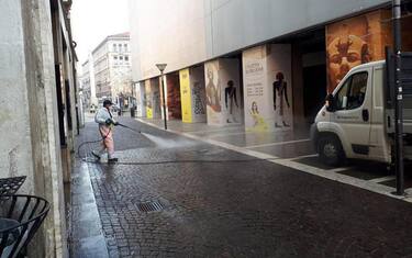 Padova semi-deserta,si sanificano piazze Veneto Negozi chiusi, poca gente e con mascherine 12 mar - 16:38