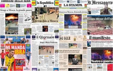 Le prime pagine dei quotidiani di oggi 23 marzo: la rassegna stampa Cronaca L'attacco dell'Isis a Mosca e la rivelazione del cancro della principessa Kate in prima pagina su... 23 mar - 08:05 16 foto