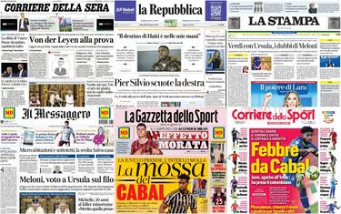 Le prime pagine dei quotidiani di oggi 18 luglio: la rassegna stampa Cronaca Giornata decisiva per la conferma di Ursula von der Leyen alla guida della Commissione europea. I... 18 lug - 07:01 12 foto