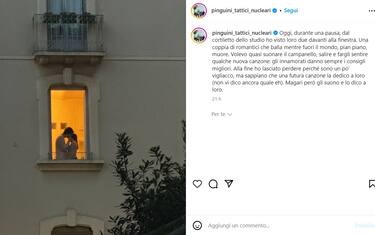 Pinguini Tattici Nucleari, un bacio da una finestra ispira Zanotti Musica Il leader della band condivide una foto scattata dal cortile del suo studio di registrazione: due... 15 ott - 13:25