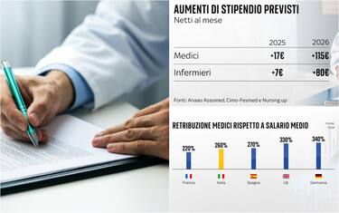 Manovra, per sanitari aumenti di stipendio troppo bassi: le cifre Economia Il testo stanzia 1,3 miliardi di fondi aggiuntivi per la Sanità, una somma che secondo i... 24 ott - 08:30 6 foto