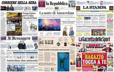 Le prime pagine dei quotidiani di oggi 9 novembre: la rassegna stampa Cronaca I giornali aprono sull'agguato ai tifosi israeliani del Maccabi Tel Aviv al termine della partita... 09 nov - 07:57 16 foto