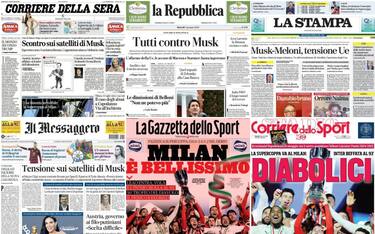 Le prime pagine dei quotidiani di oggi 7 gennaio: la rassegna stampa Cronaca La polemica sui satelliti di Elon Musk e sul presunto accordo, negato da Palazzo Chigi, tra il... 07 gen - 07:12 16 foto