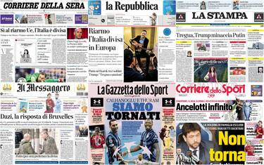 Le prime pagine dei quotidiani di oggi 13 marzo: la rassegna stampa Cronaca È ancora il riarmo dell'Unione europea a tenere banco sulle aperture dei giornali in edicola. In... 13 mar - 07:07 13 foto