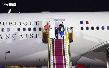 Macron prende manata dalla moglie Brigitte sull'aereo presidenziale Mondo Dopo aver sdrammatizzato l'episodio salutando la stampa e i presenti, il presidente francese e la... 26 mag - 12:11