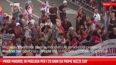Pride Madrid, in migliaia per i 20 anni da prime nozze gay Mondo In un'atmosfera festosa, fra striscioni arcobaleno, canti, balli e musica sparata dagli... 06 lug - 12:01