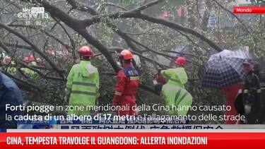 Forti piogge in zone meridionali della Cina hanno causato la caduta di un albero di 17 metri e...