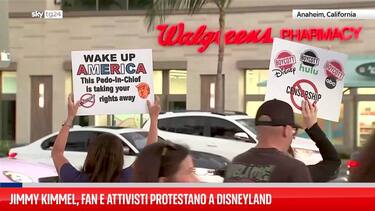 Jimmy Kimmel, fan e attivisti protestano a Disneyland Mondo Ad Anaheim, in California, i sostenitori di Jimmy Kimmel si sono radunati fuori da Disneyland per... 20 set - 10:00
