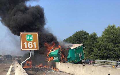 Incidente su A4, camion a fuoco: disagi per migliaia di automobilisti Cronaca Un mezzo pesante ha invaso la carreggiata opposta superando il guard-rail e schiantandosi contro... 01 ago - 14:08