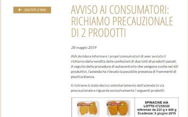 Aia richiama cotolette e spinacine, possibile presenza di plastica Cronaca L'avviso, comparso anche sul sito del Ministero della Salute, è stato diffuso dall'azienda che ha... 29 mag - 21:28