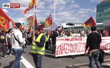 Alitalia, manifestazione dei lavoratori all'aeroporto di Fiumicino Lazio Circa 500 lavoratori della compagnia e del trasporto aereo hanno dato vita a un corteo e... 23 apr - 18:15