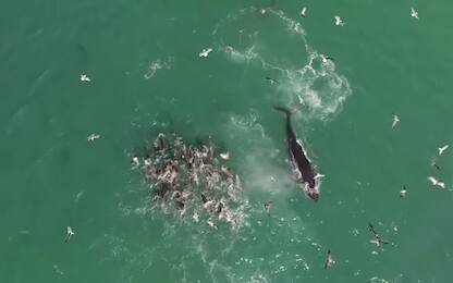 Balene e leoni marini banchettano con migliaia di acciughe. VIDEO Ambiente Il lauto pasto di un gruppo di megattere ripreso con un drone al largo della California centrale... 22 nov - 13:50