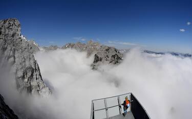 Germania, immersione tra le nuvole sulla montagna Alpspitze