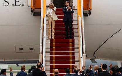 Macron prende manata dalla moglie Brigitte sull'aereo presidenziale Mondo Dopo aver sdrammatizzato l'episodio salutando la stampa e i presenti, il presidente francese e la... 26 mag - 12:11