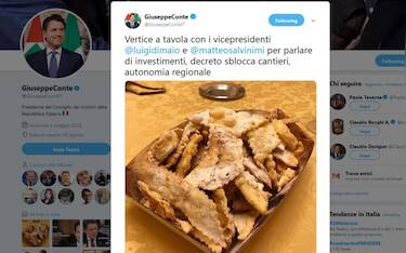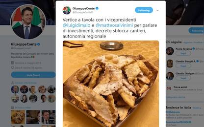 Conte, foto con le chiacchiere di Carnevale: ironia su Twitter Cronaca Il presidente del Consiglio ha pubblicato l'immagine dopo un vertice con i due vicepremier... 28 feb - 11:47