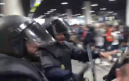 Aeroporto Barcellona, polizia carica manifestanti catalani. VIDEO Mondo Gli agenti della polizia locale, i Mossos d'Esquadra, hanno usato i manganelli per... 14 ott - 19:43