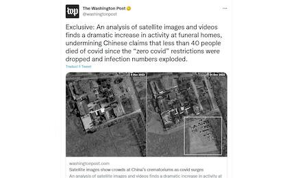 Covid in Italia e nel mondo. L'Oms: da Cina nessuna minaccia imminente Cronaca Immagini shock pubblicate in esclusiva dal Washington Post: riguardano sei metropoli. L'Oms:... 10 gen - 23:58